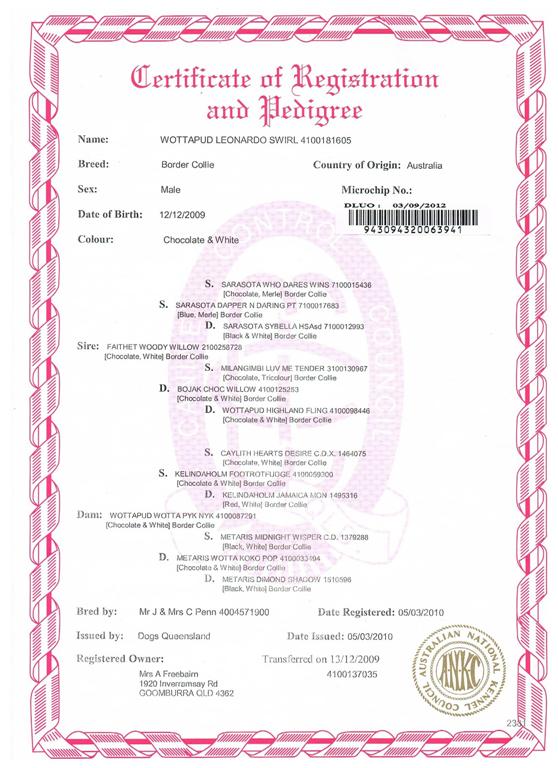 Wottapud Leonardo Swirl was Truckaluck Kennels first Registered male Border Collie from 12.12.09 to 22.10.23.