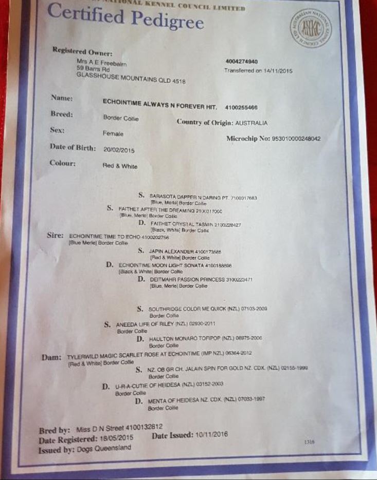 Hi my name is Sahara. My registered name is Echointime Always N Forever. I'm a newcomer here and I'm loving it!!! I'm still just a pup at 9 months old and I'm having heaps of fun here learning to love my truck rides and going out and about with my kennel mates. I've done a little Lure Coursing in the last few months just puppy runs, and I'm looking forward to running with Mister, he'll show me how its done. I may even get a chance at Herding. I have a busy and happy future ahead.